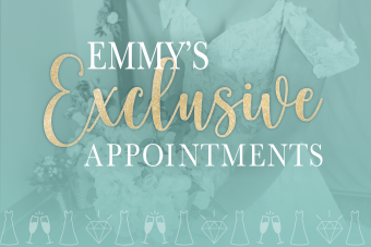 What is it? Our Emmy’s Exclusive Appointment is a paid, private shopping experience designed to give each bride a unique and memorable experience when searching for the most important dress of her life. You’ll enjoy special privileges including: