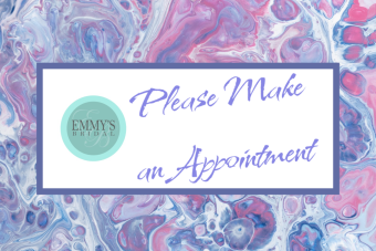 At Emmy’s Bridal we value every Bride, Mom, Bridesmaid and flower girl shopper who takes the time to visit our store. For this reason, we ask that you call in advance to set up an appointment if at all possible so we can give you a marvelous experience while you are here! Appointments help us make sure we are properly staffed and have a dressing room available for your use. We will always make every effort to help “walk-in” customers as well, but on busy days you may not get the Attention you deserve without an appointment.
